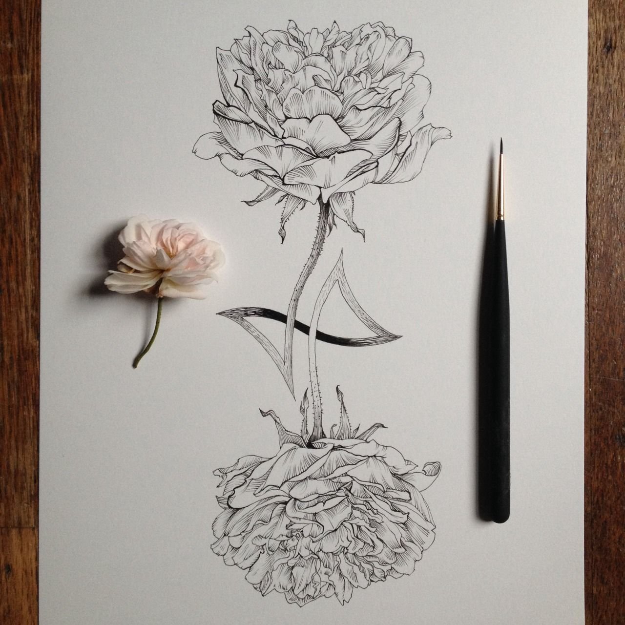 Роза черной ручкой
