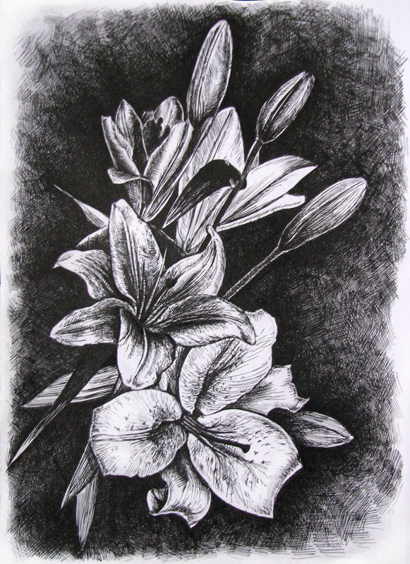![Цветы тушью]()