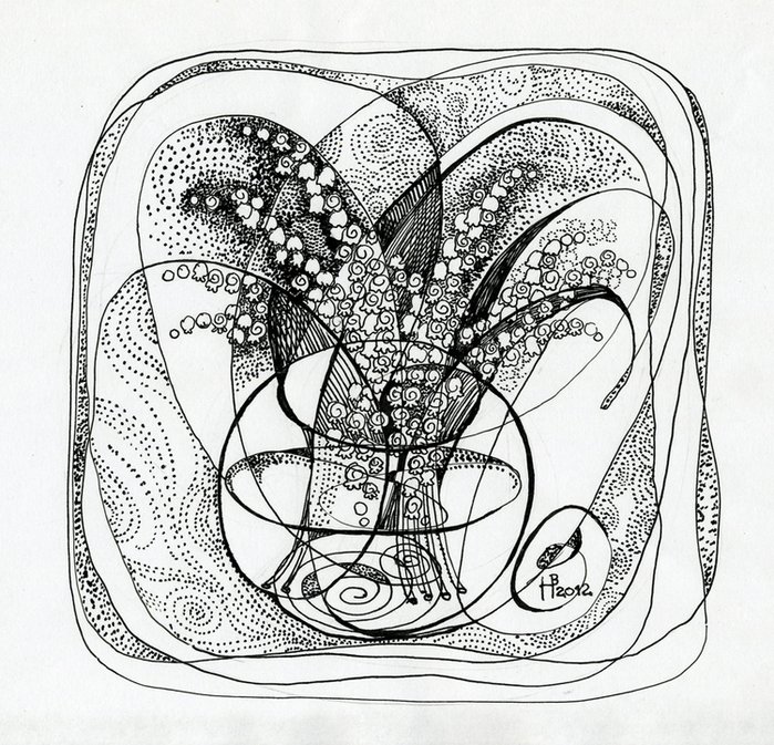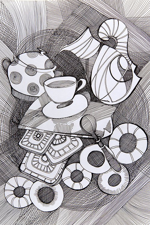 ![Декоративный натюрморт тушью]()