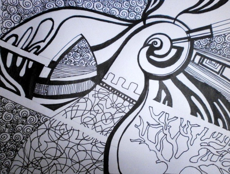 Графическая композиция гелевой ручкой