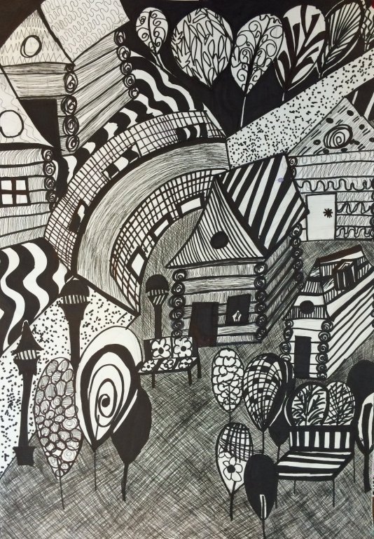 ![Графическая композиция гелевой ручкой]()