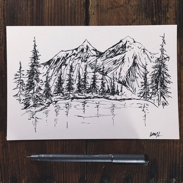 Пейзаж черной ручкой легкий