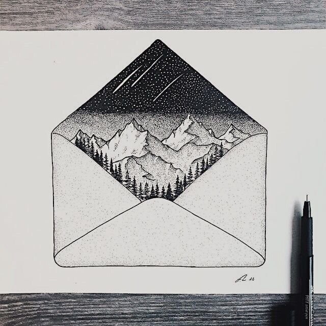 Пейзаж черной ручкой