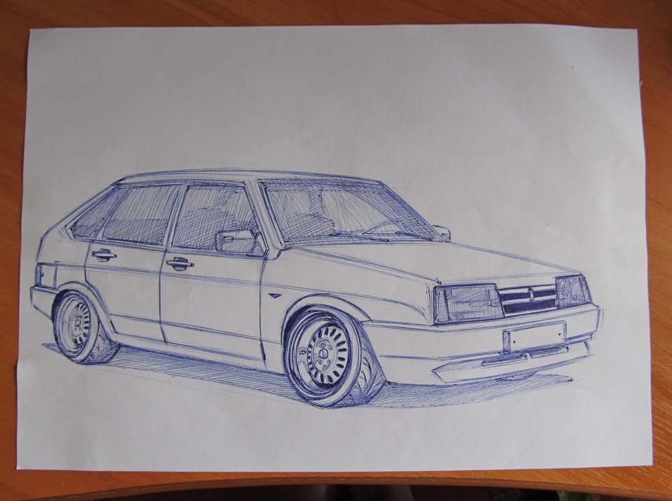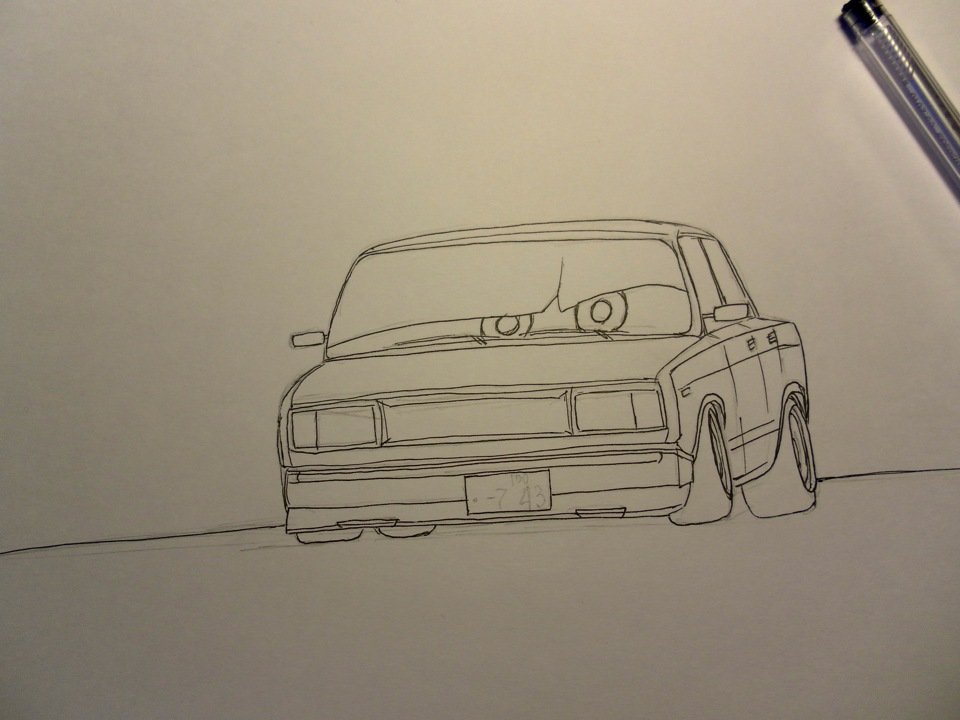 ![ВАЗ 2107 рисунок карандашом спереди]()
