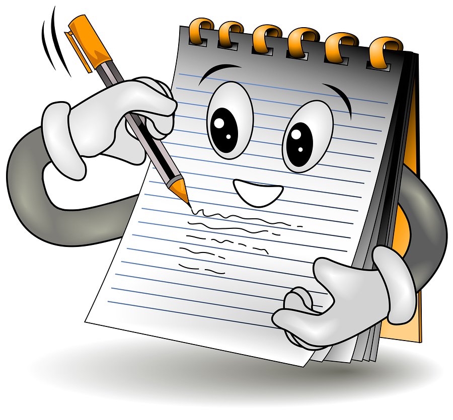 ![Мультяшный блокнот с ручкой]()