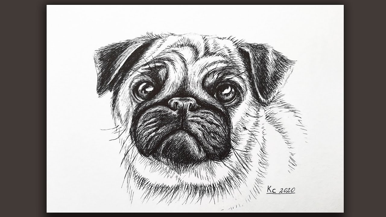 ![Собака Мопс карандашом]()