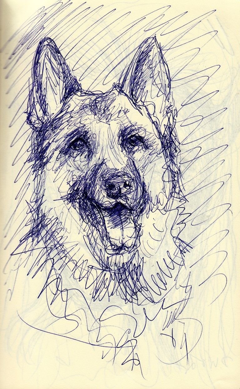 ![Зарисовка немецкой овчарки]()