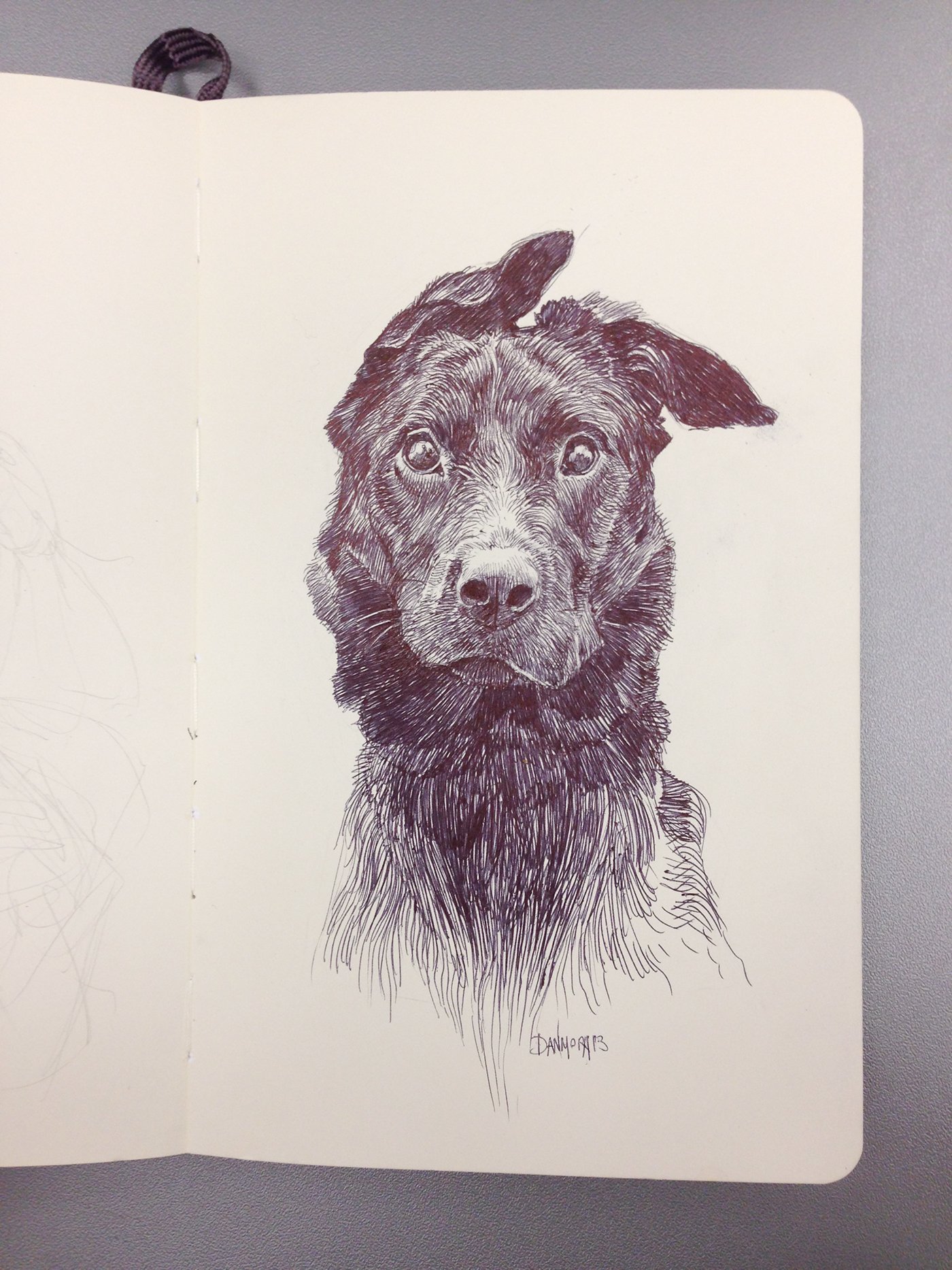 ![Зарисовка собаки ручкой]()