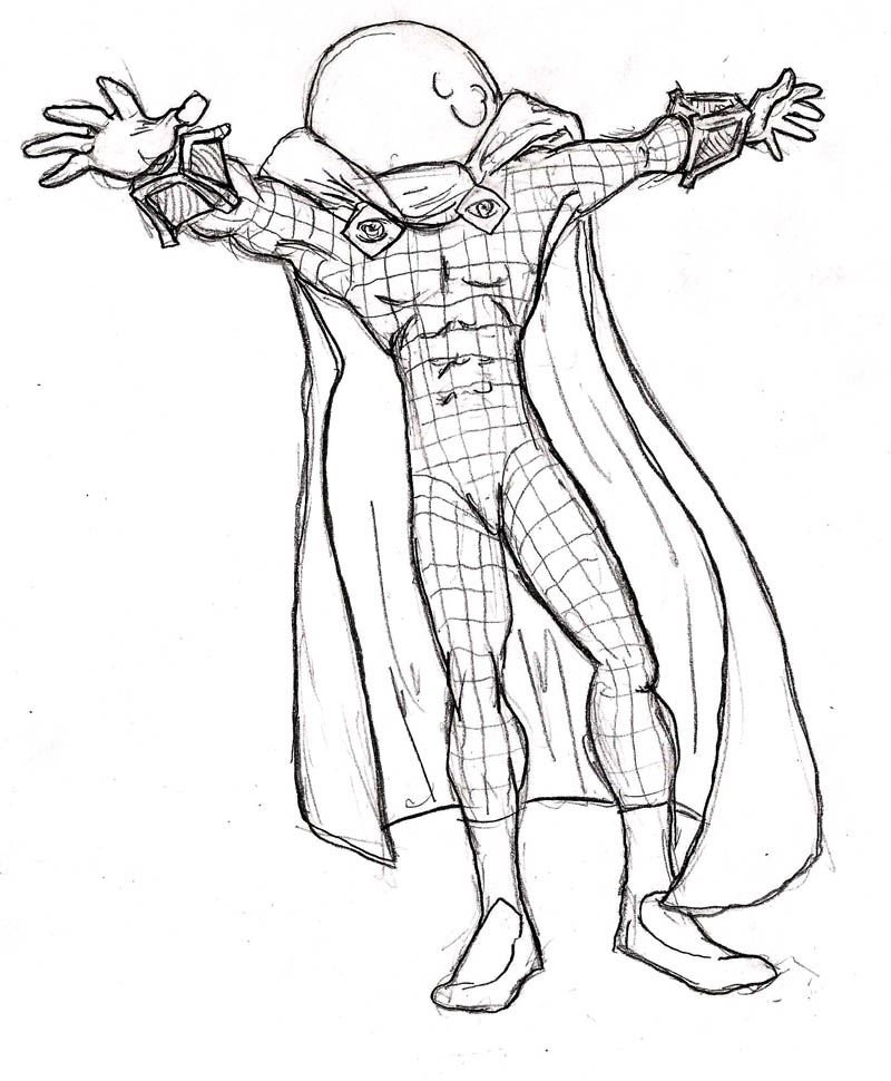 Раскраска человек паук и Мистерио
