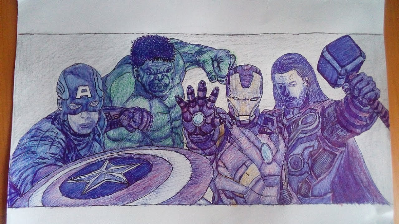 ![Рисунки ручкой Мстители]()