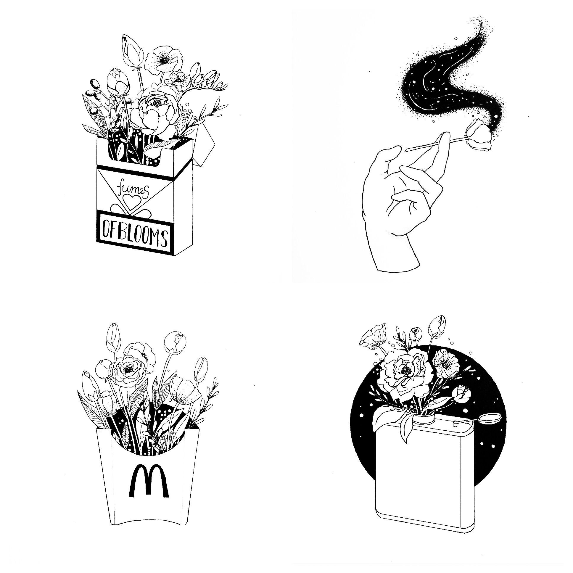 ![Рисунки в черно белом стиле]()