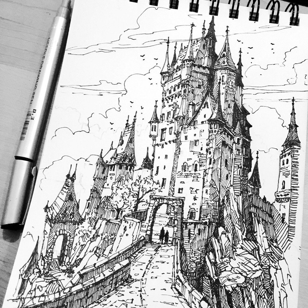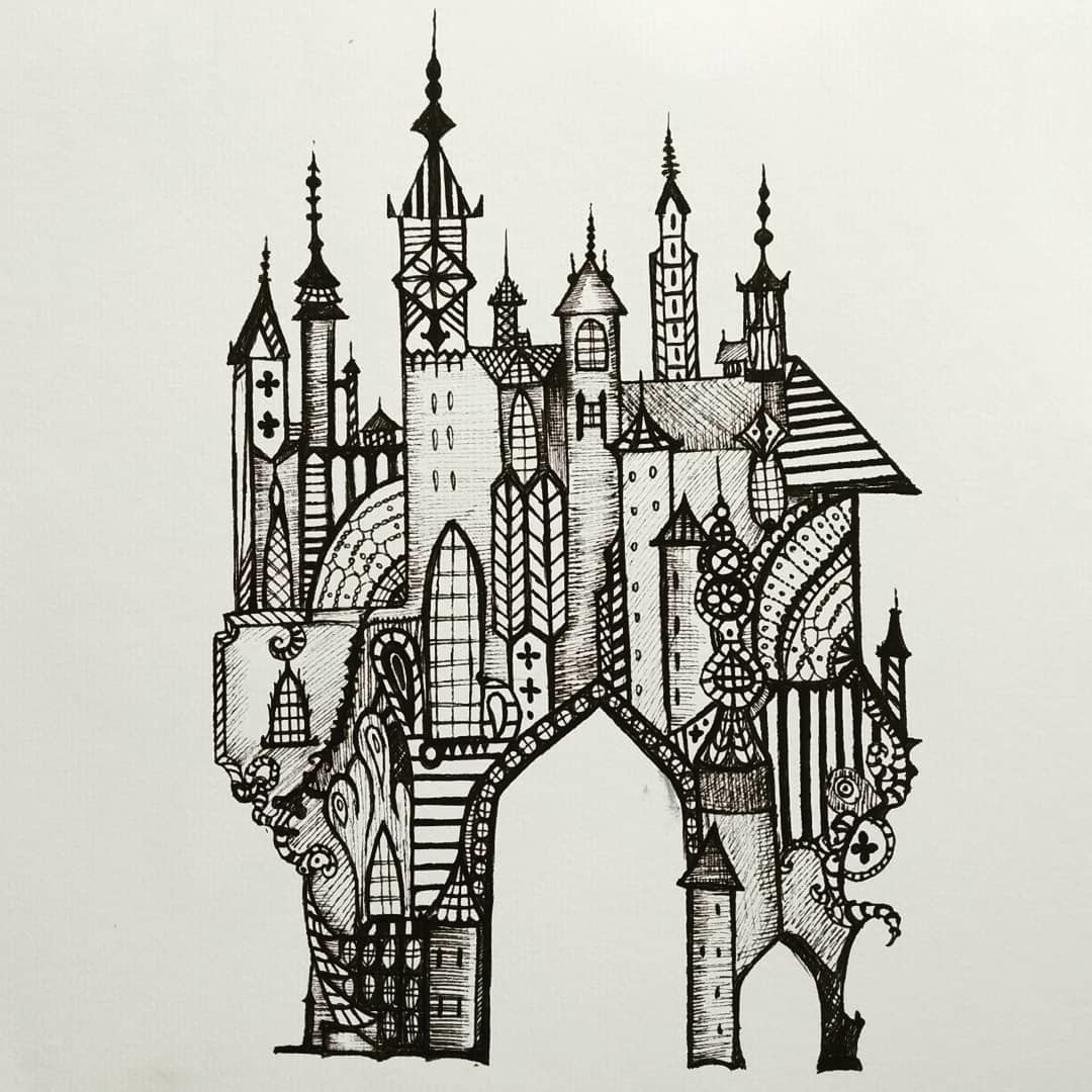 ![Рисунки чёрной ручкой замок]()