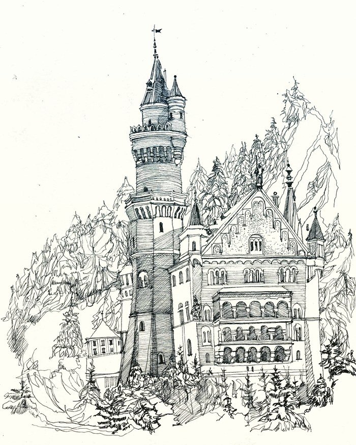 ![Нойшванштайн Германия скетч]()