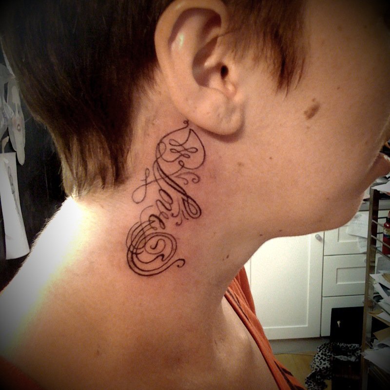 Тату Ноты на шее