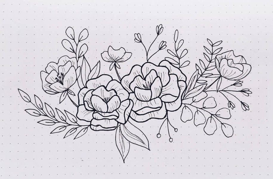 ![Лежачий букет цветов для срисовки]()