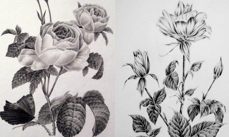 ![Цветы простым карандашом]()