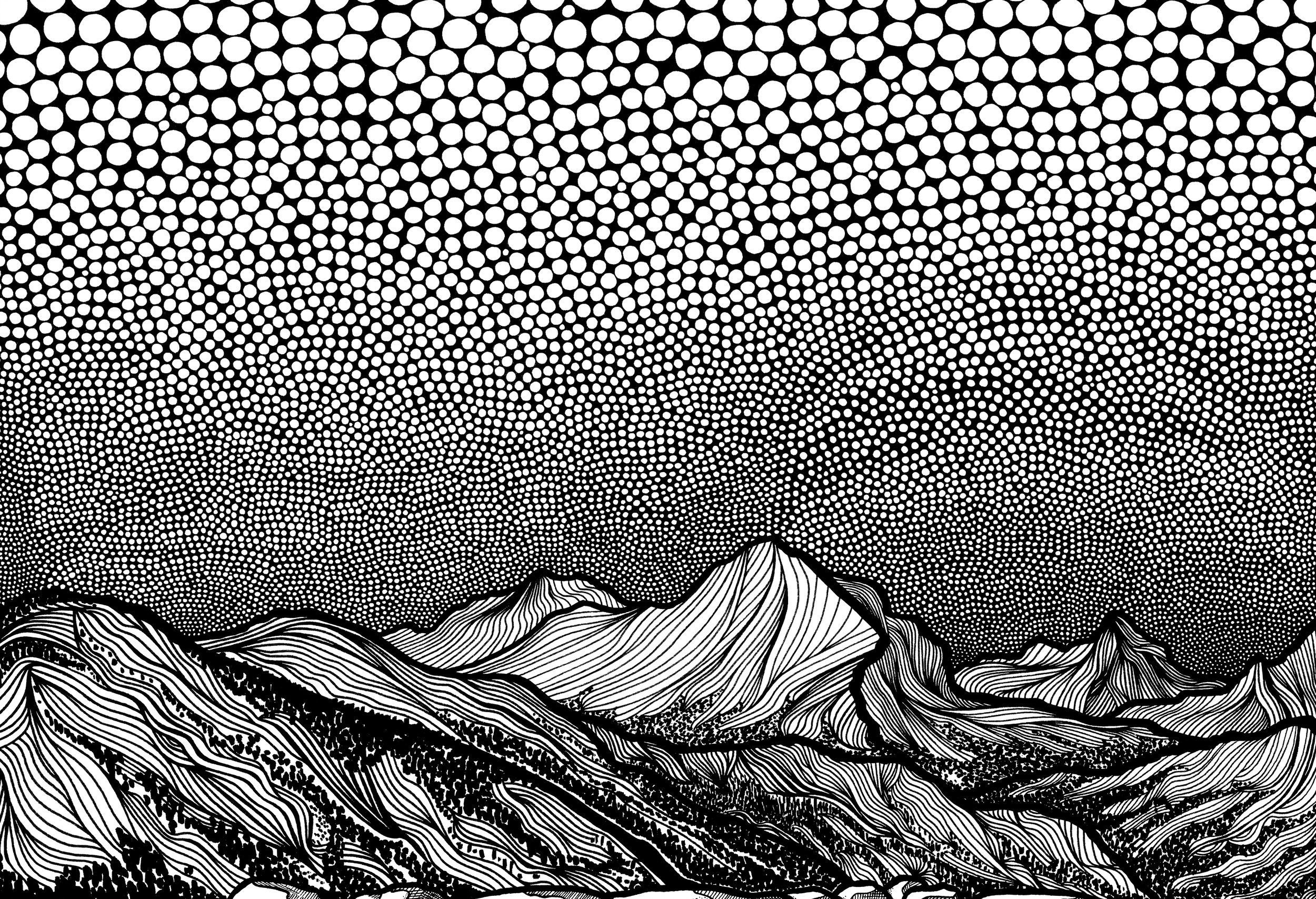 Техника пуантилизм горы