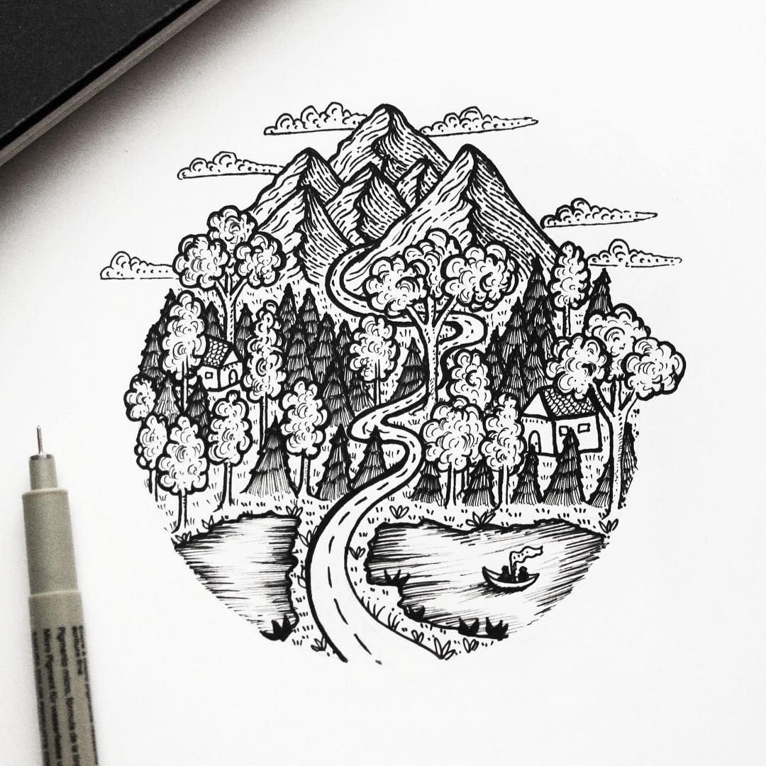 Скетч линером пейзаж
