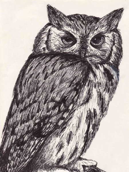 ![Сова черной ручкой]()
