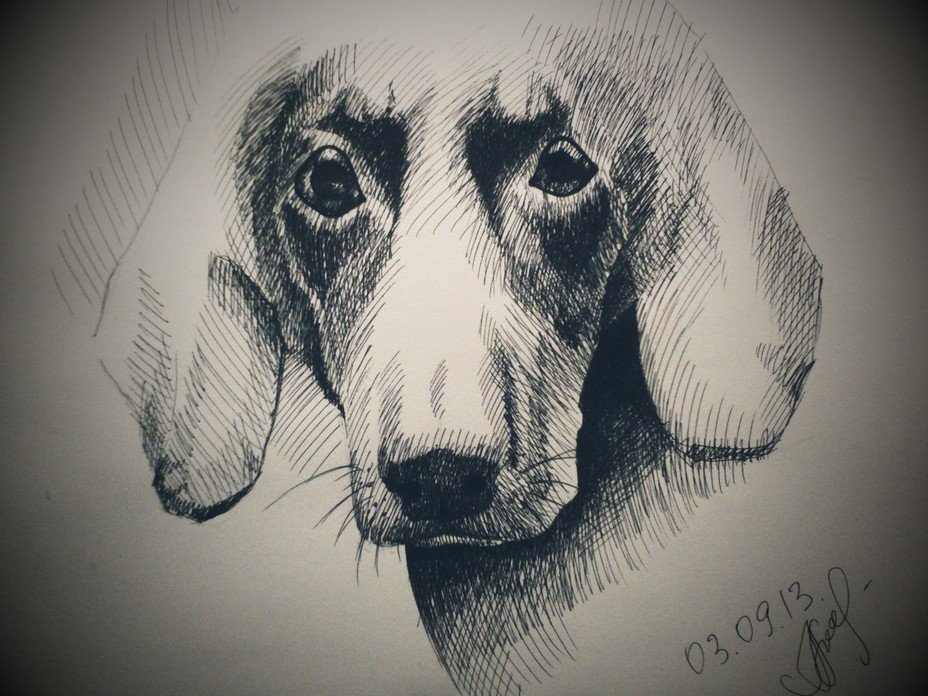 ![Собака черной ручкой]()