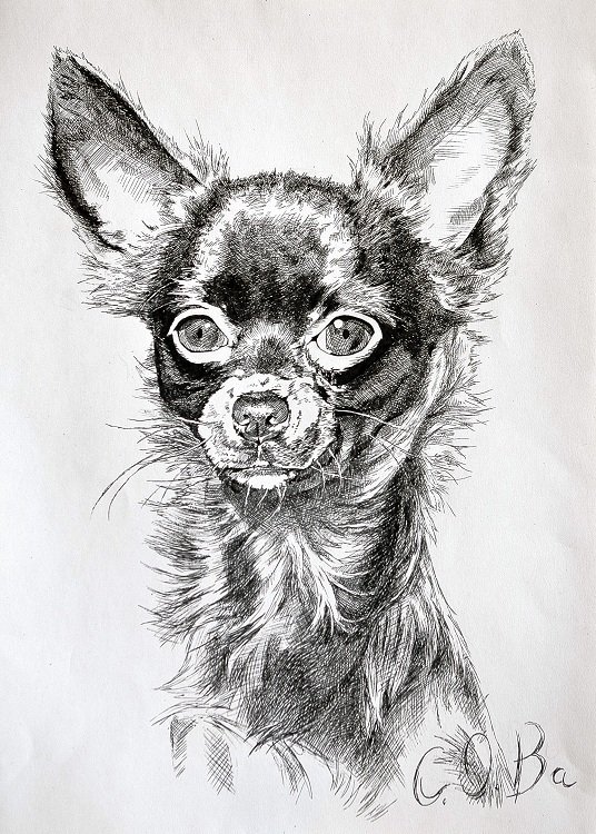 Собака черной ручкой