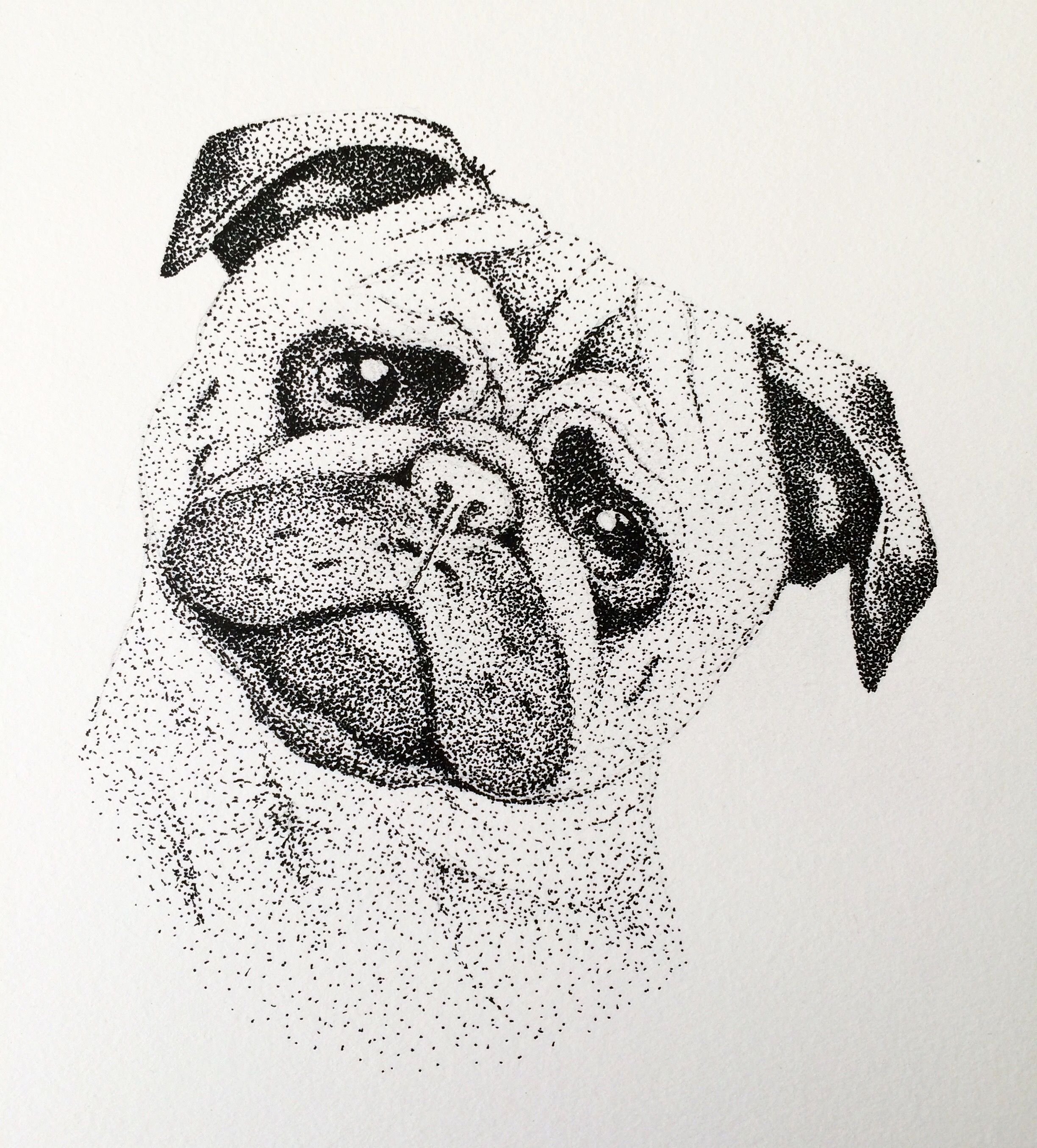 Рисование набросков мопсика