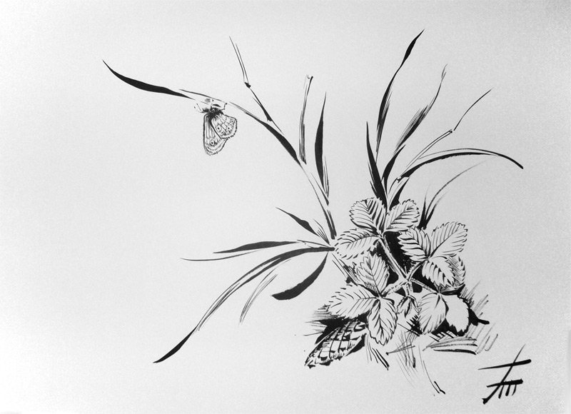Цветы тушью