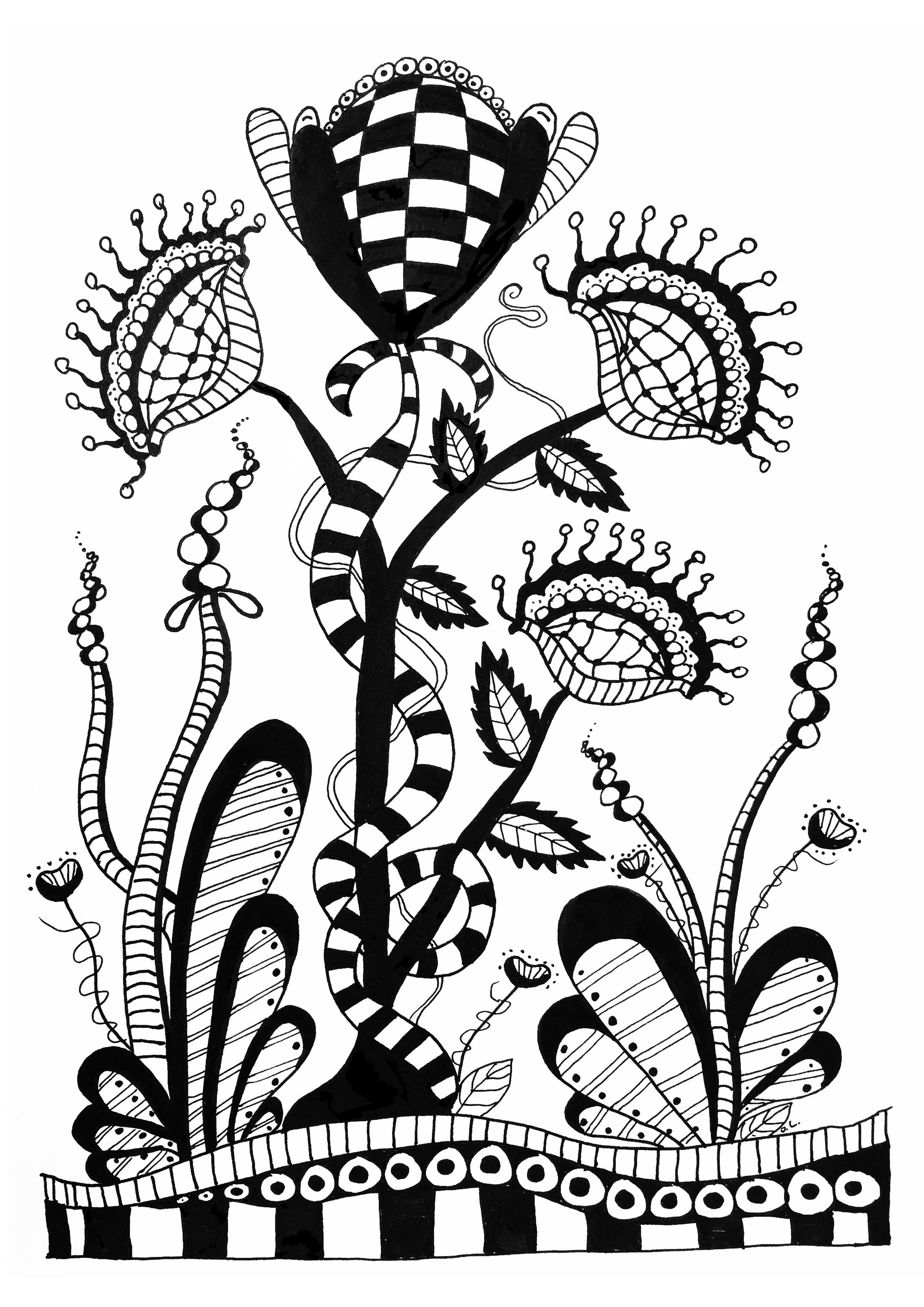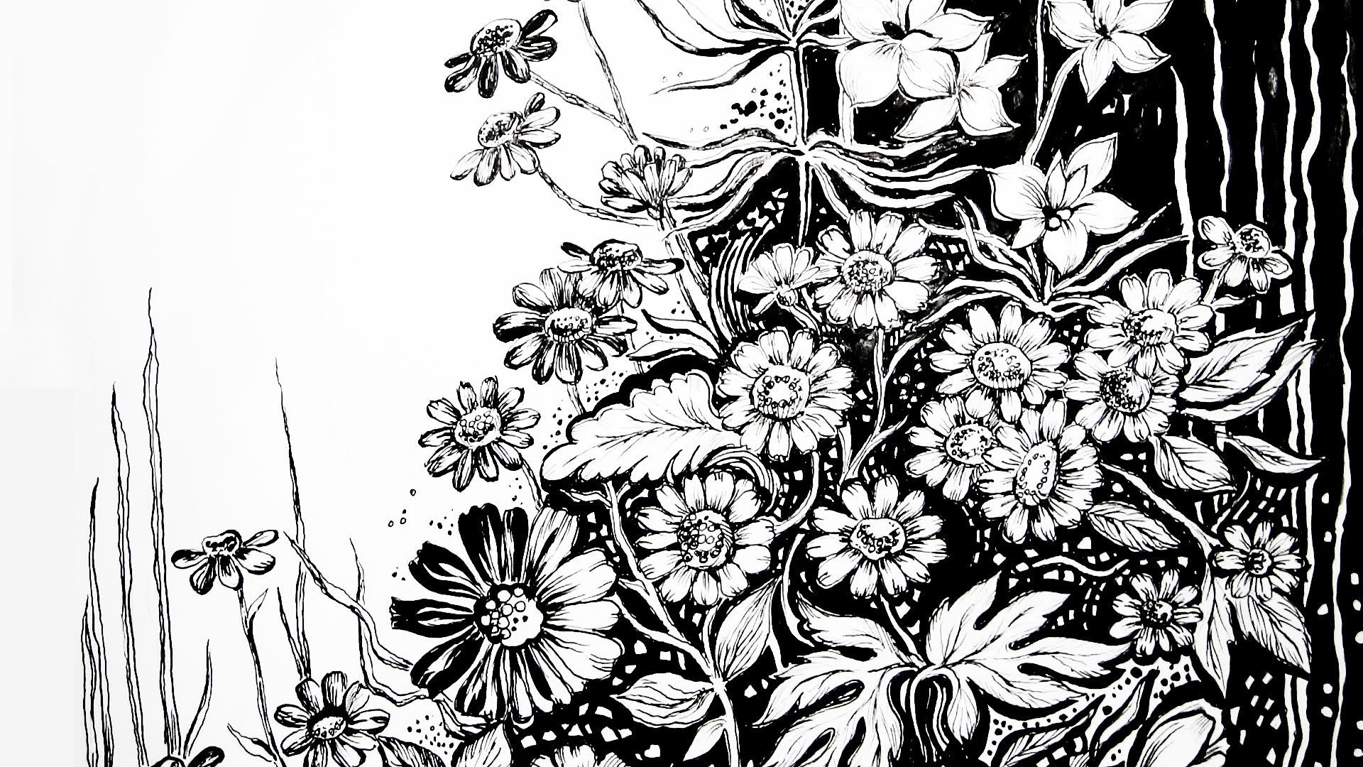 Цветы черной ручкой