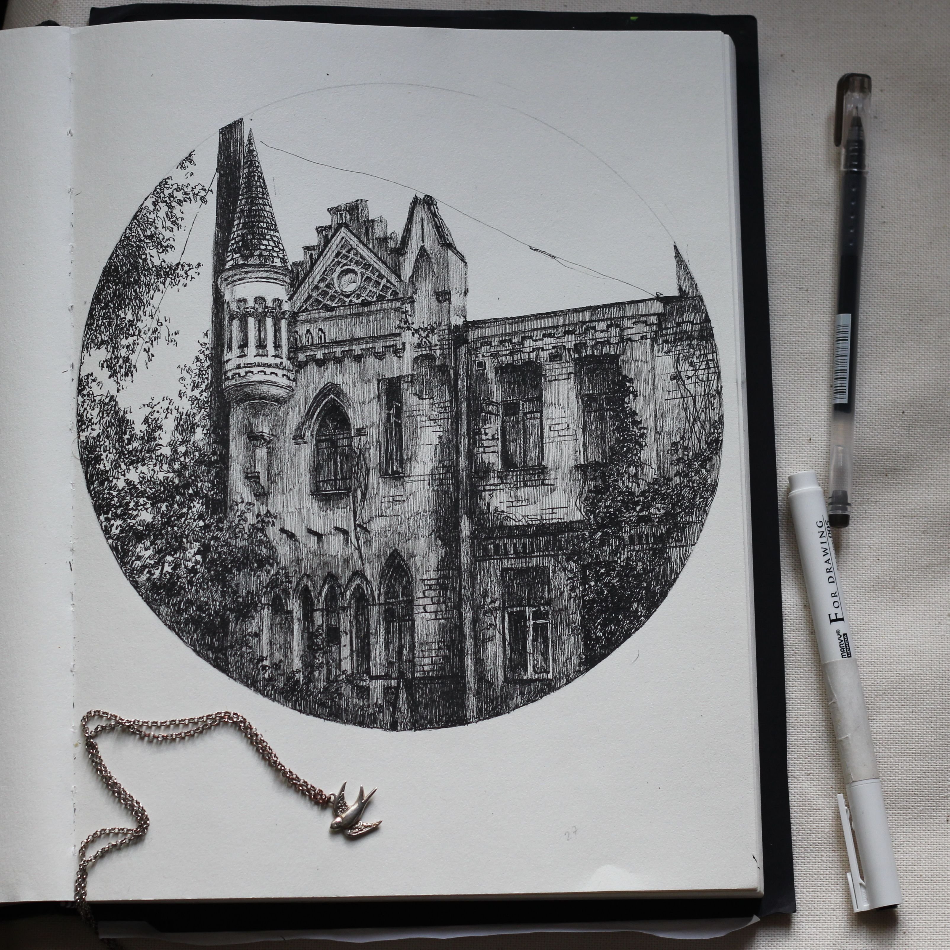 Рисунки тушью в скетчбуке