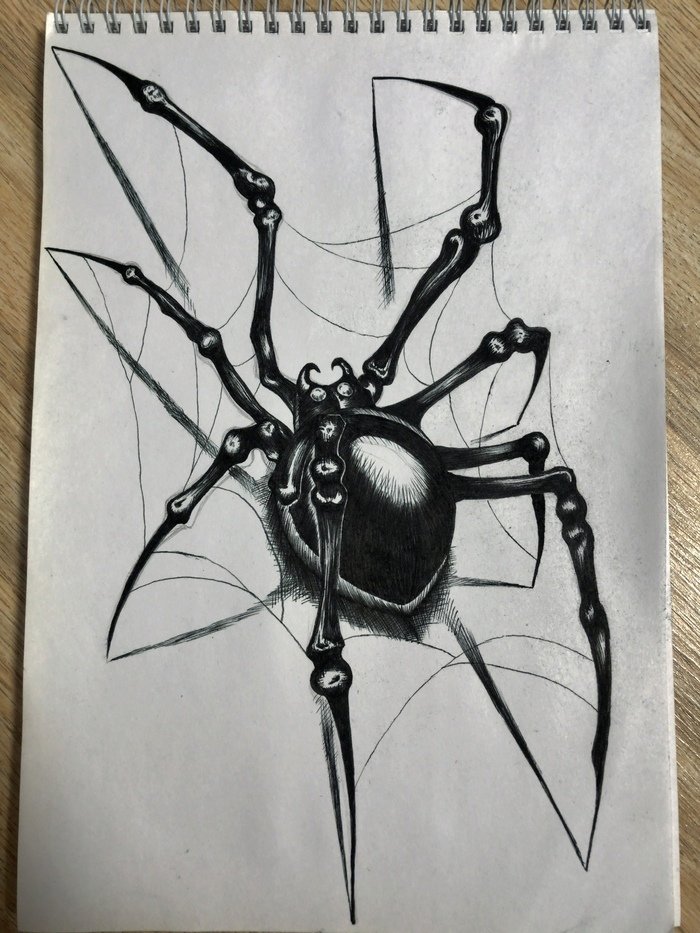 Паук рисунок черной ручкой - это удивительное произведение искусства, которое захватывает воображение своей точностью и деталями. Оттенки чернил создают живые контуры паука, придают ему реалистичность и эффект глубины. Этот рисунок идеально передает структуру паука: его ноги, тонкие щупальца и характерные черты. Такой рисунок подходит для любителей искусства и тех, кто ценит мастерство и оригинальность. Будьте готовы удивиться и обратить на себя внимание с этим потрясающим рисунком паука, выполненным черной ручкой.