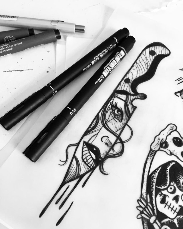 ![Рисунки чёрной ручкой]()