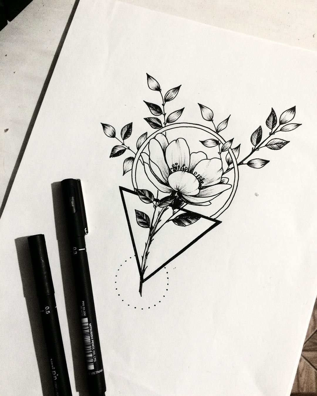 ![Цветы черной ручкой]()
