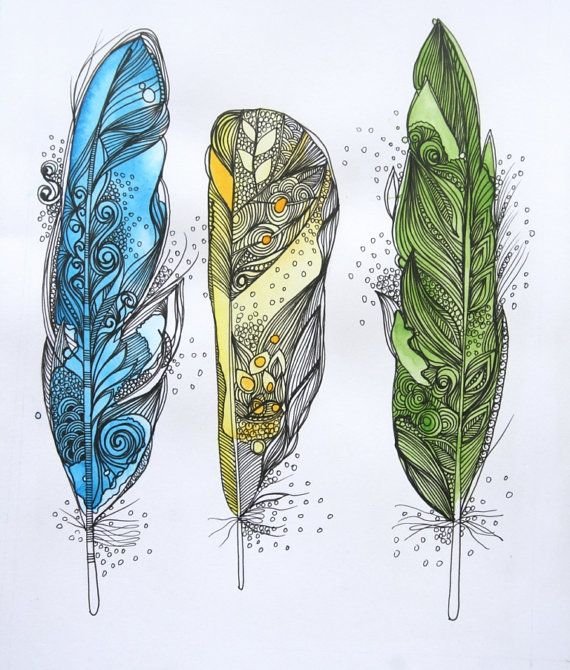 ![Перья Зентангл акварель]()