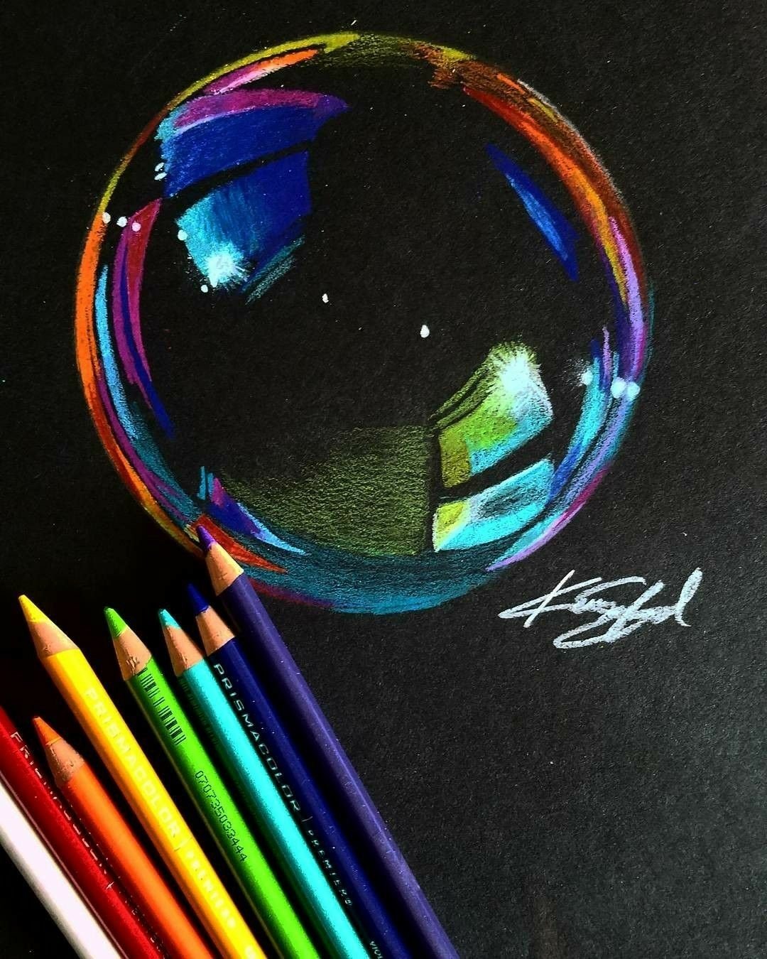 Мыльные пузыри цветными карандашами