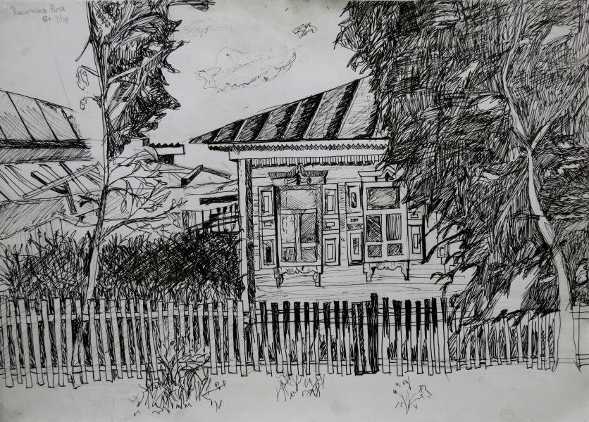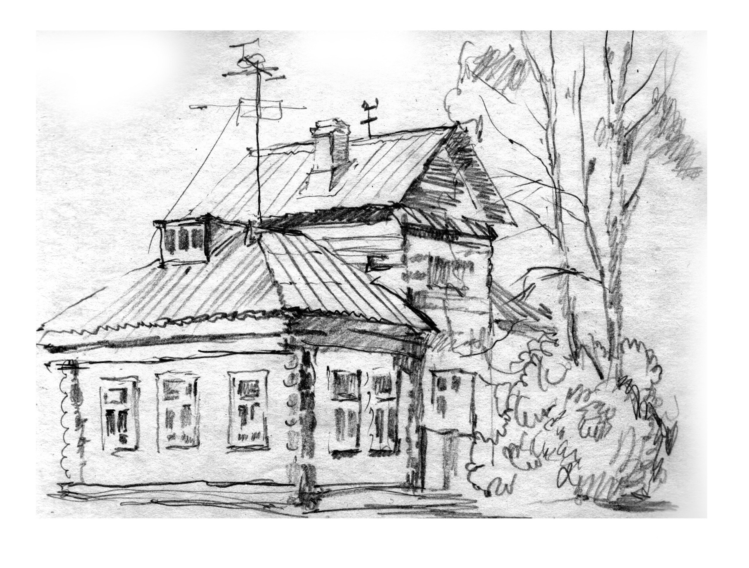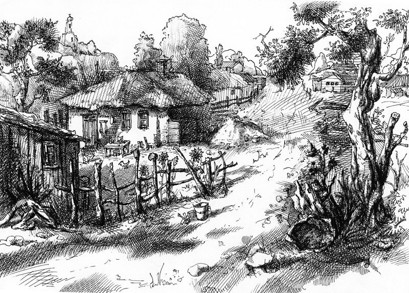 ![Зарисовки деревенских домов]()