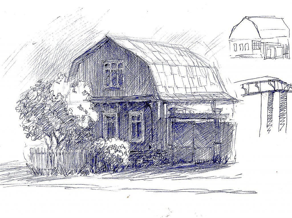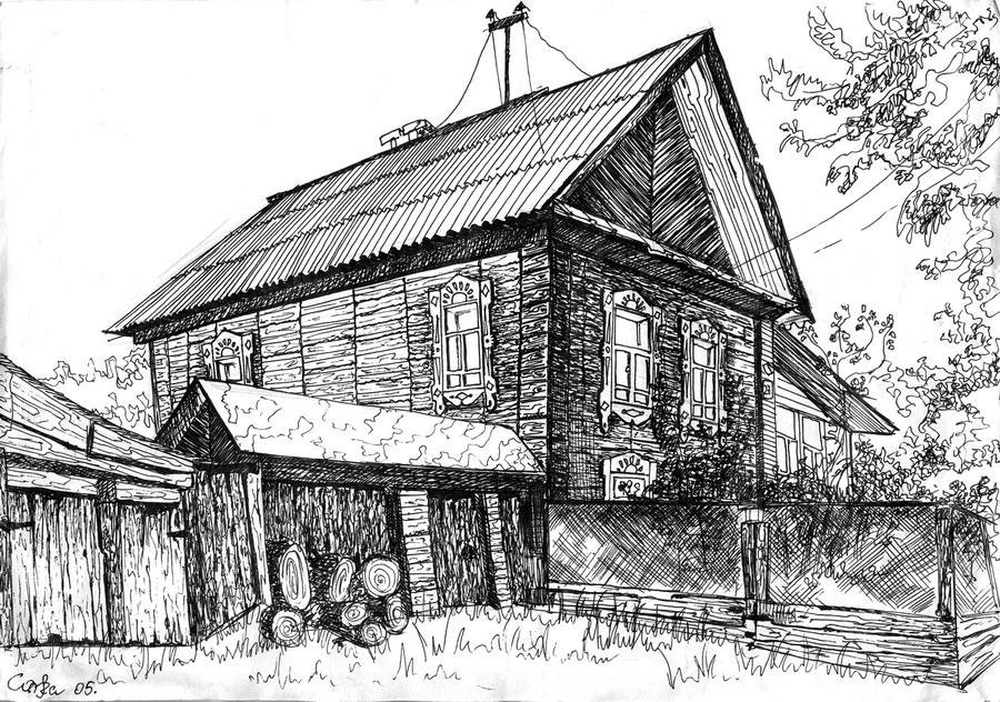 ![Наброски деревенских домов]()