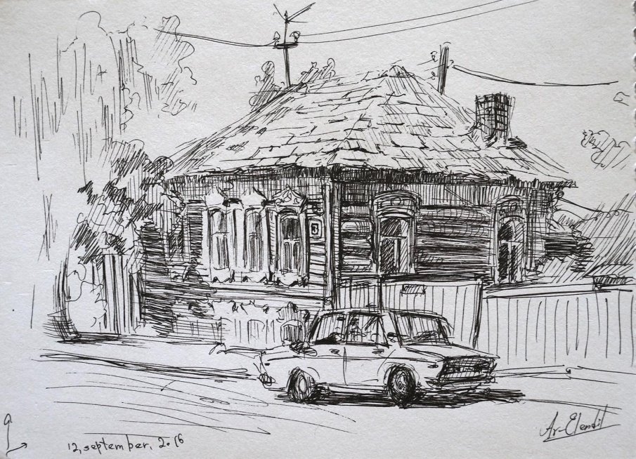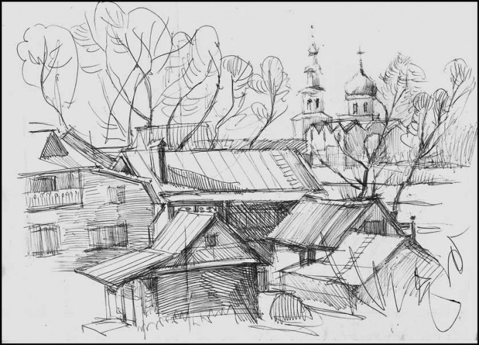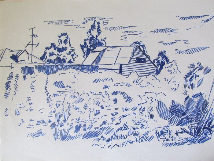 ![Зарисовки пейзажа ручкой]()