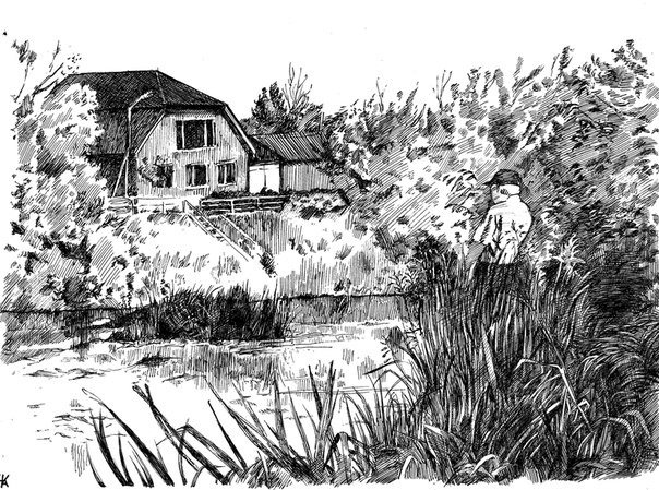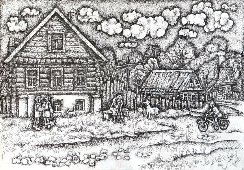 ![Графика пленэр в деревне]()