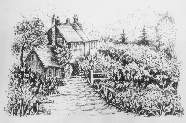 ![Деревенский дом в графике]()