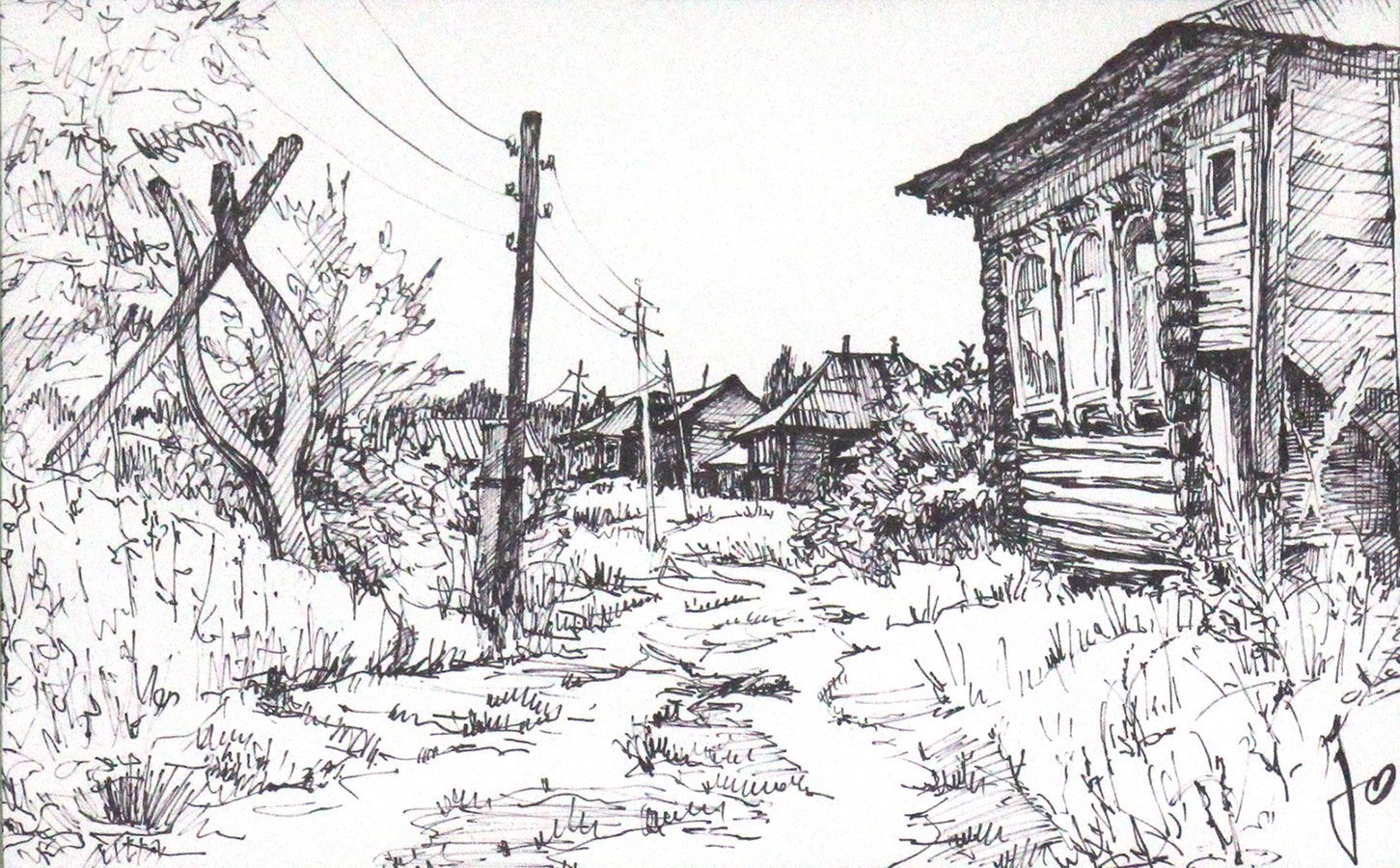 Графика пленэр в деревне