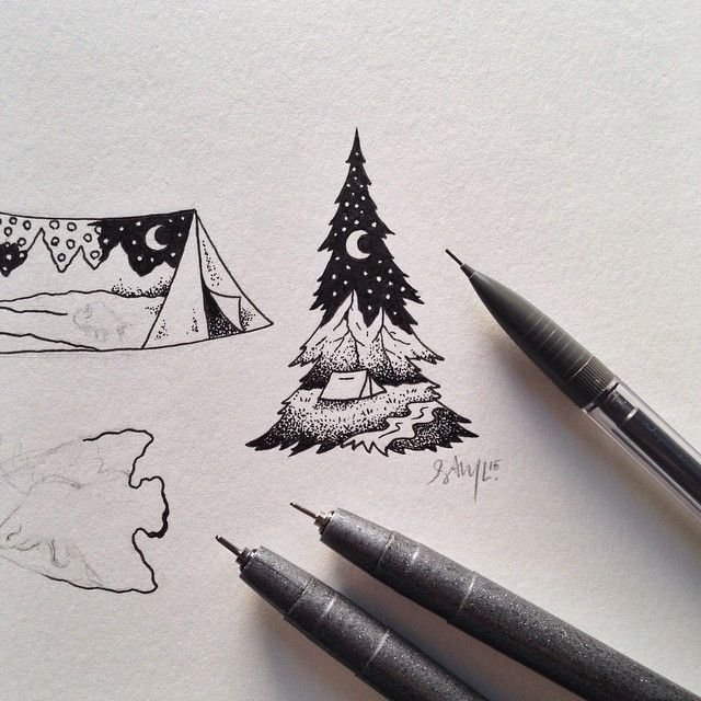 ![Рисунки елки гелевой ручкой (50 фото)]()