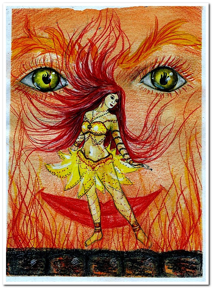 Огонь цветными карандашами