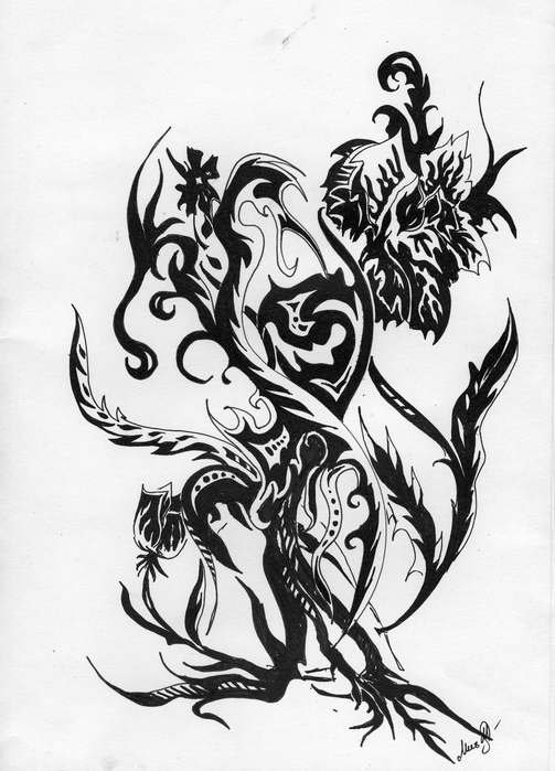 ![Дракон черной ручкой]()