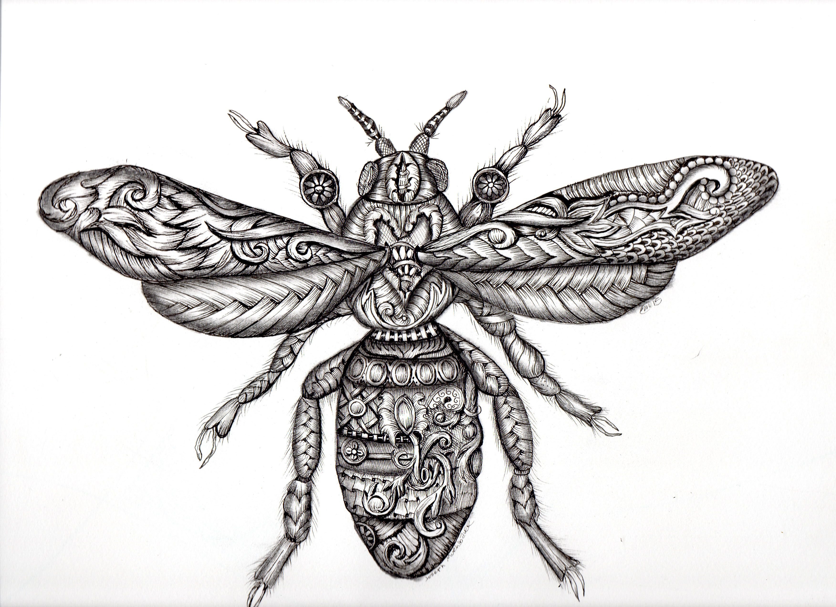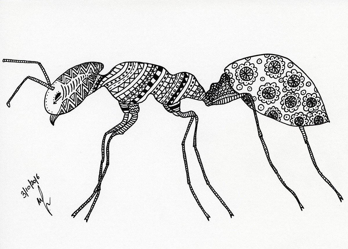 Зарисовки насекомых гелевой ручкой