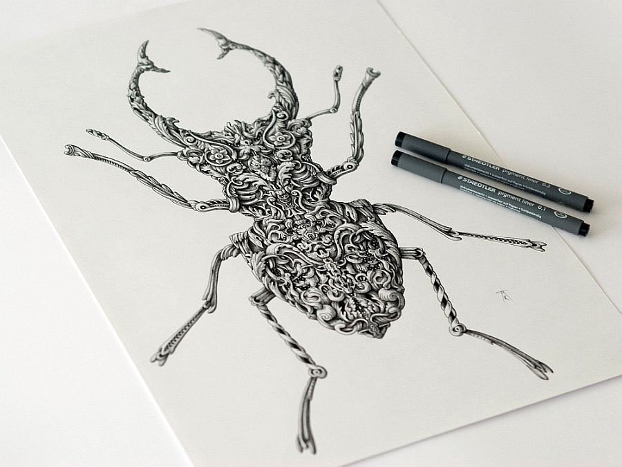 ![Насекомые тушью]()