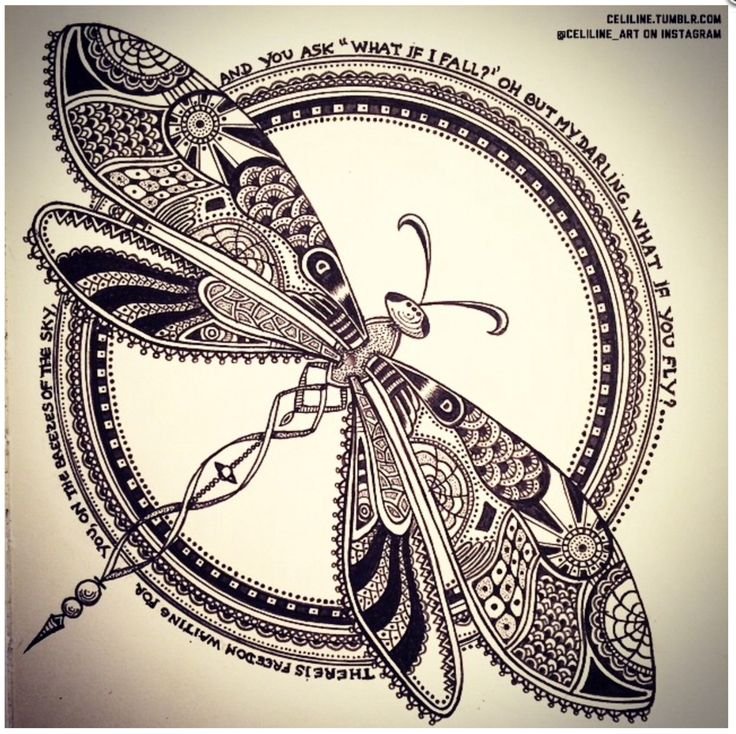 ![Стрекоза Зентангл]()