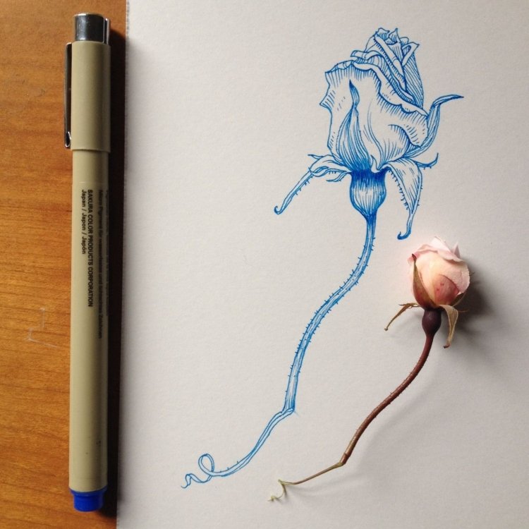 ![Роза шариковой ручкой]()