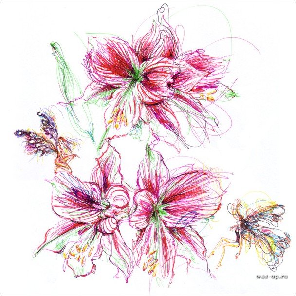 ![Цветы нарисованные ручкой]()