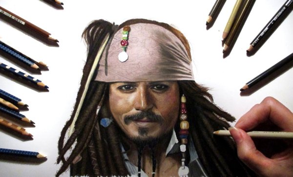 ![Джонни Депп карандашом]()