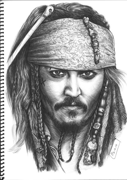 ![Джонни Депп рисунок ручкой]()